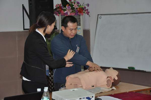 為了充分發(fā)揮本次培訓(xùn)的作用,讓大家可以把理論與實踐相結(jié)合,并學(xué)以致用。特在現(xiàn)場抽出人員進行模擬學(xué)習(xí)心肺復(fù)蘇急救、人工呼吸、穴位按摩等?,F(xiàn)場在活躍、愉快的氣氛中結(jié)束了本次的培訓(xùn)講座。