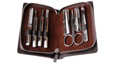 產(chǎn)品規(guī)格:130mm*82mm 產(chǎn)品重量:220g 天地盒規(guī)格:140mm*90mm*28mm 材質(zhì):PU皮+420不銹鋼+碳鋼+鋅合金 配件:平口指甲鉗、美容剪、斜口指甲鉗、眉夾、指甲銼、刮刀、死皮刀、平頭推整器 套裝顏色:白色+彩紋